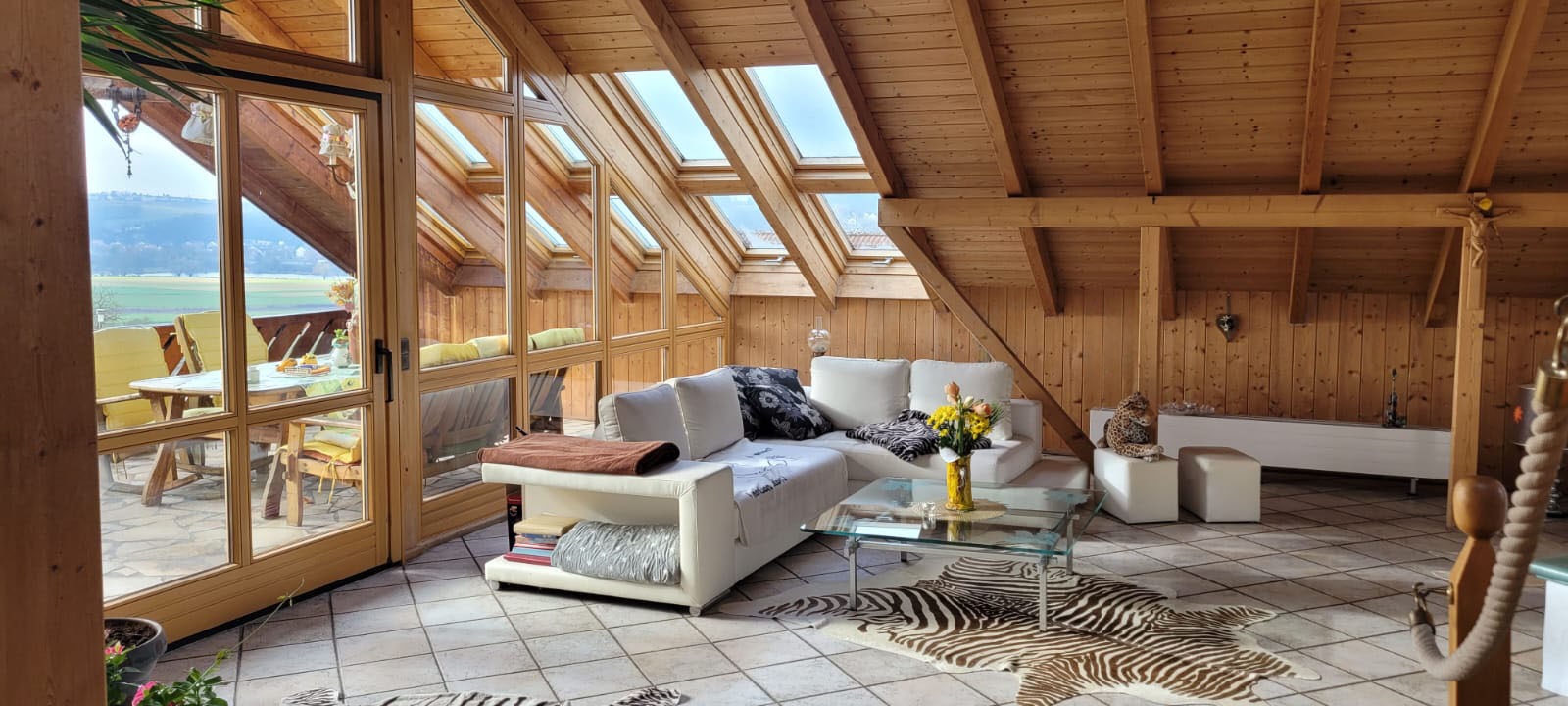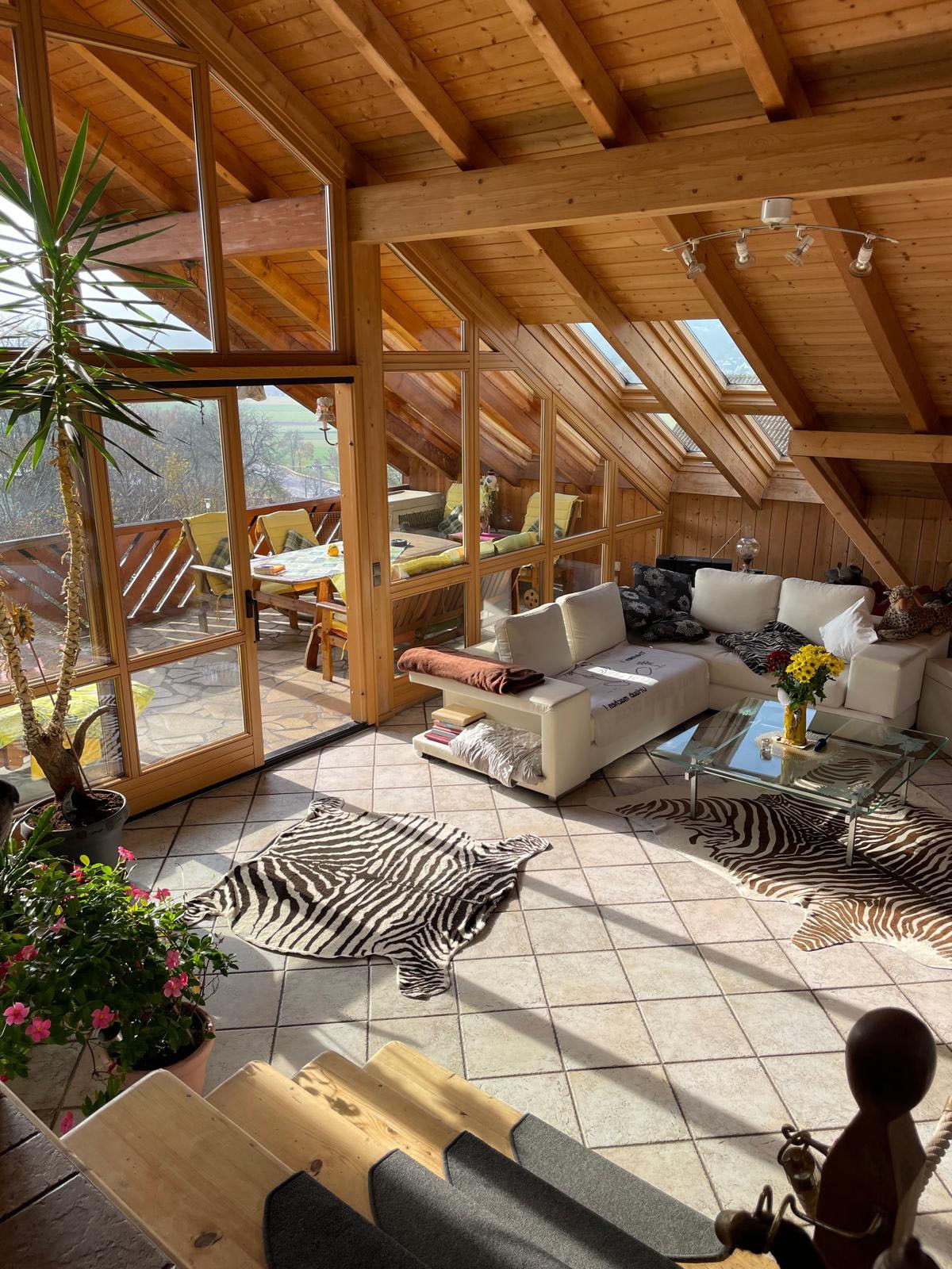 Dieses charmante Loft aus dem Jahr 1997 sucht neue Eigentümer. Auf 116 m² Wohnfläche sowie einem zusätzlich teilausgebauten Dachstudio mit rund 40 m² bietet es den Neuerwerbern ausreichend Platz. Das Herzstück der Immobilie ist der helle Wohn-Essbereich, welcher mit einer angrenzenden nach Westen ausgerichteten Loggia und einem uneingeschränkten Blick bis nach Regensburg überzeugt. Die angrenzende Vollholzküche, die mit einem Kohleherd ausgestattet ist, unterstreicht den warmen und herzlichen Gesamteindruck der Wohnung.Das an das Schlafzimmer angrenzende Studio, welches einen direkten Zugang zum 4x10 m großen, beheizten Außenpool bietet, lässt sich mit geringem Aufwand flexibel umgestalten und eröffnet eine Vielzahl an Nutzungsmöglichkeiten entweder als Büro oder weiteres Schlafzimmer. Auch über das sehr geräumige Badezimmer, welches mit einer Badewanne und Dusche ausgestattet ist, ist der Pool, welcher über Solarpanele beheizt wird, zugänglich. Zusätzlich gibt es eine Galerie mit etwa 7–8 m², die den Wohnbereich harmonisch ergänzt und vielfältige Nutzungsmöglichkeiten bietet.